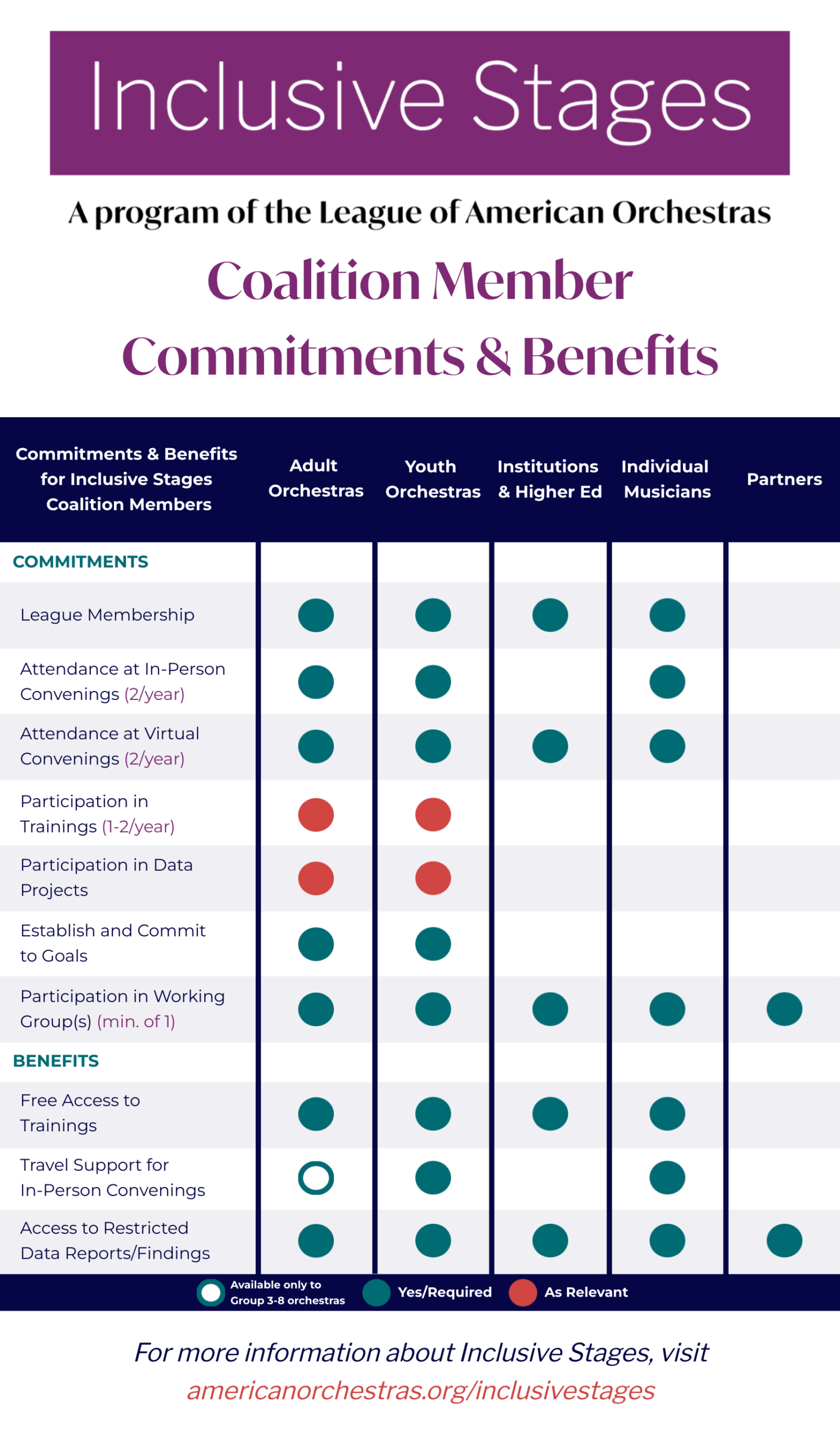 Recruitment for the National Coalition is now open. Please email inclusivestages@americanorchestras.org with any questions about joining the coalition.