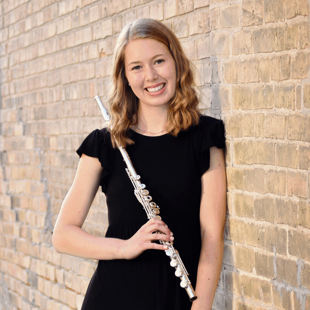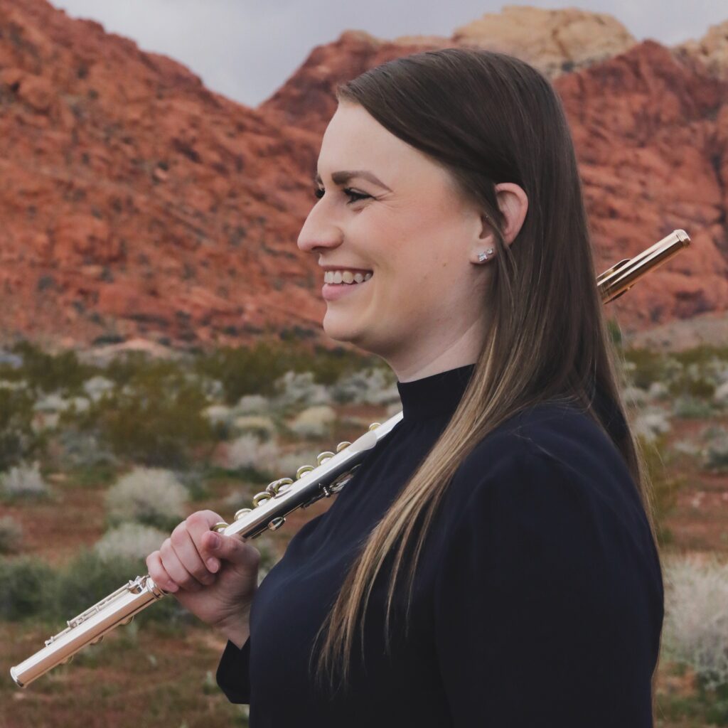 Megan Rasmussen, BM ‘25 (Flute Performance with a Minor in Entrepreneurship), Utah State University. Front of House Intern, Utah Symphony | Opera, Deer Valley Music Festival (2024); Convention Registration Assistant, National Flute Association 2023 Convention. Flutist, Utah State University Symphony Orchestra (2022-23). Member, National Flute Association; College Ambassador, Utah Flute Association; Ambassador, Caine College of the Arts.