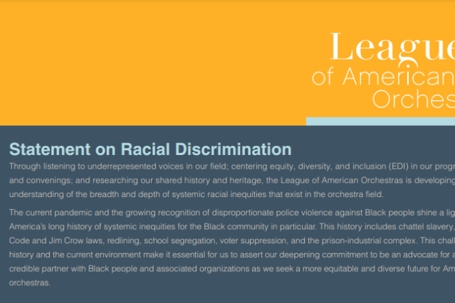 The League of American Orchestras serves as a thought leader, promoting the ideas and ideals that will help orchestras adapt and thrive in the future—among them, artistic vibrancy, healthy cultures, civic engagement, racial equity, and social justice.